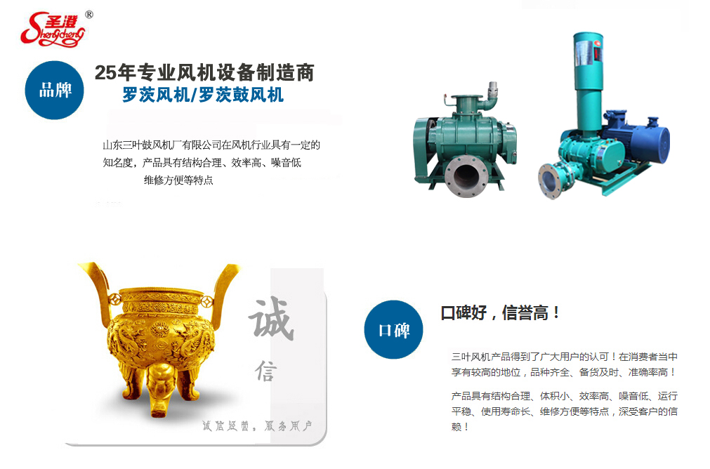 山東三葉鼓風機廠有限公司(原章丘市三葉鼓風機廠)創(chuàng)建于1990年,是專業生產羅茨鼓風機、羅茨真空泵、增壓泵以及回轉式風機系列產品的廠家,南靠309國道、膠濟鐵路線,北接濟青高速公路,地理位置優(yōu)越,交通便利。本公司本著“質量第一、誠信為本”的指導方針,經過十多年的發(fā)展,以過硬的產品質量,及時完善的售后服務已在市場中占領一席之地。本公司生產的風機噪音低、高效節(jié)能、外型美觀;風機進、排氣口采用螺旋形狀,使進排風過程按螺旋線的方向循序切入。產品具有結構合理、體積小、效率高、噪音低、運轉平穩(wěn)、使用壽命長、維修方便等特點。歡迎各界朋友親臨公司洽談業務,指導工作,攜手并進共創(chuàng)美好未來!